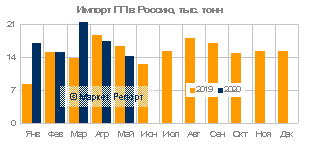 Объем ввоза стат-сополимеров пропилена(PP-random) увеличился в мае до 3,8 тысячи тонн, а в апреле цифра составляла 2,7 тысячи тонн. Прирост произошел за счет низкой стоимости трубной продукции на европейском рынке. Итоговый объем импорта PP-random за первые пять месяцев этого года составил 14,6 тысяч тонн против 13,1 тысяч тонн в 2019 году.