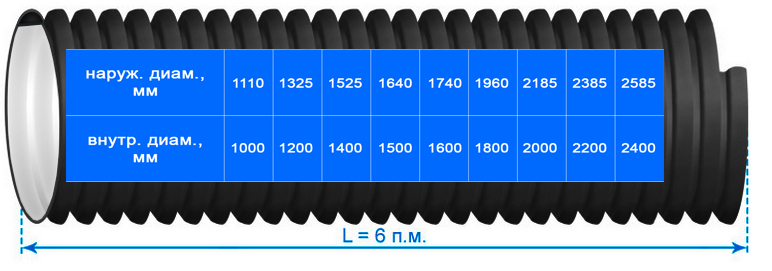 - Диаметр - от 110 до 1200 OD.